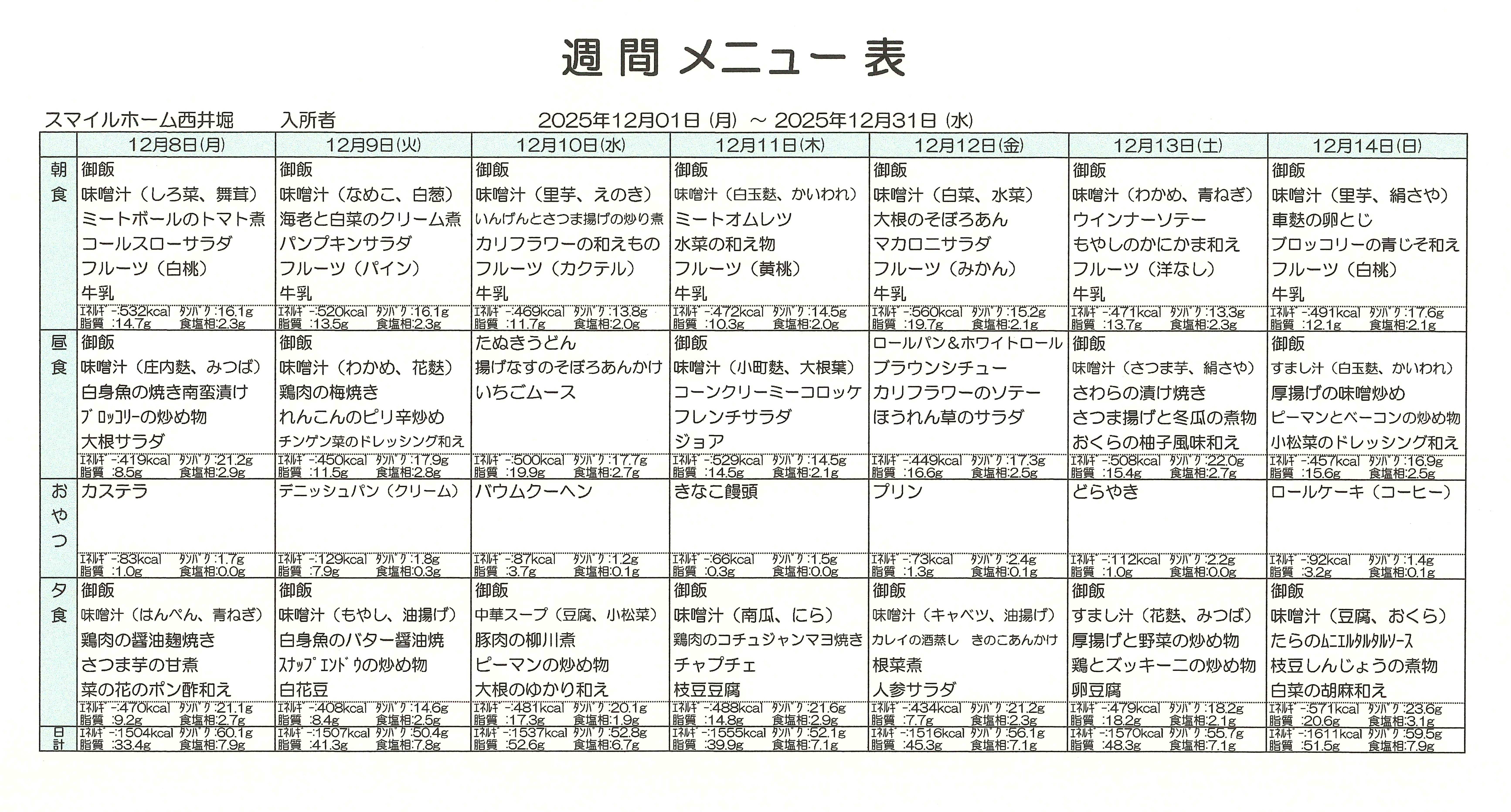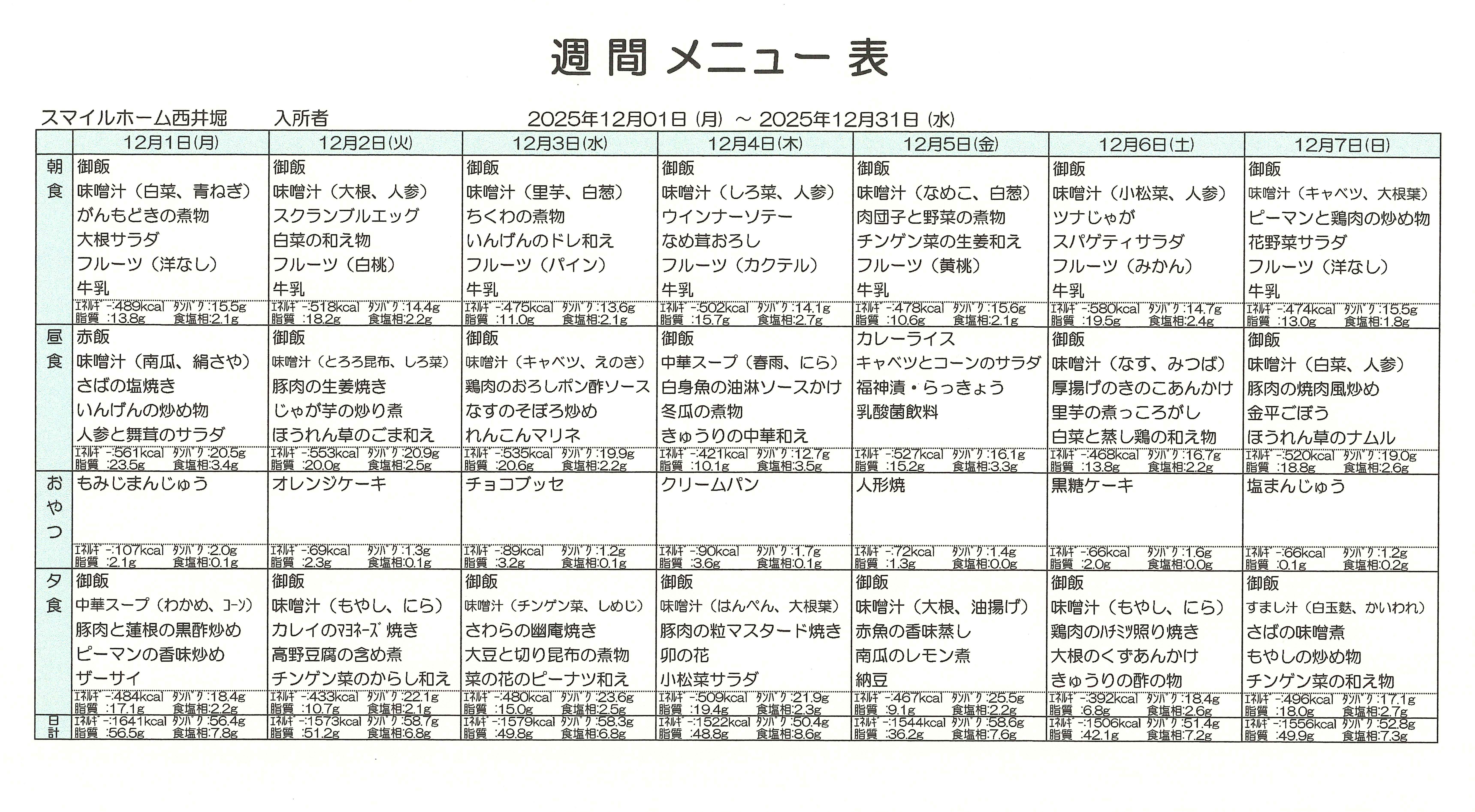令和7年12月前半の献立
