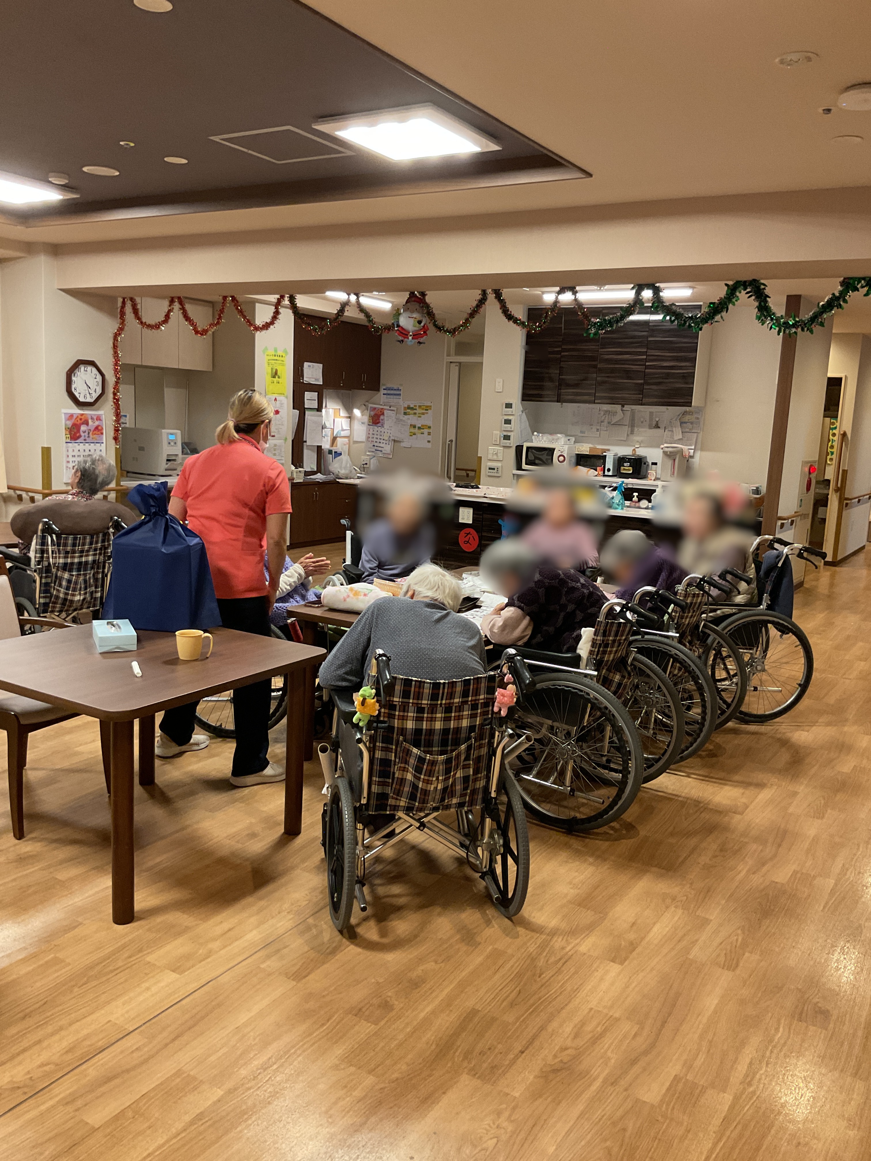 3笑温でも合同でレクを行うことがあり、脳トレや運動会など頭を使ったり、身体を動かすレクや、お寿司・おでんなど「食」を楽しんでもらうレクを行っています。