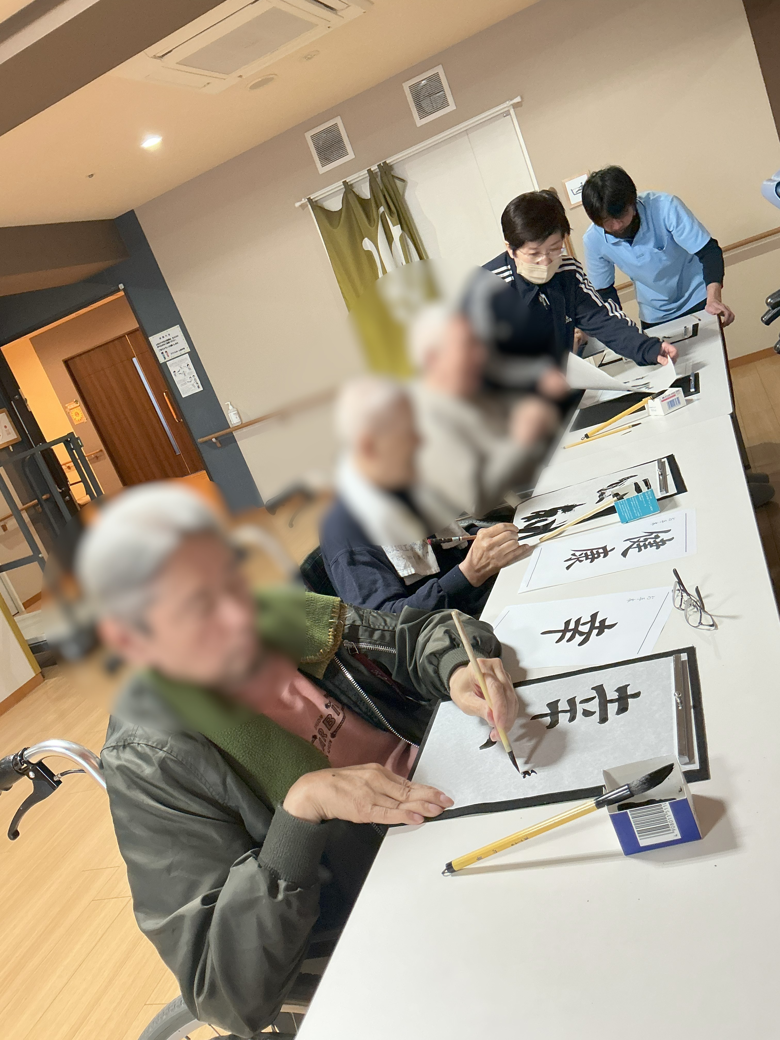 参加されたみなさんは「久しぶりだからうまく書けないわ」と話しながらも、いざ筆を持つと自然と手が動き、集中した表情で一文字ずつ丁寧に書き進めていらっしゃいました。