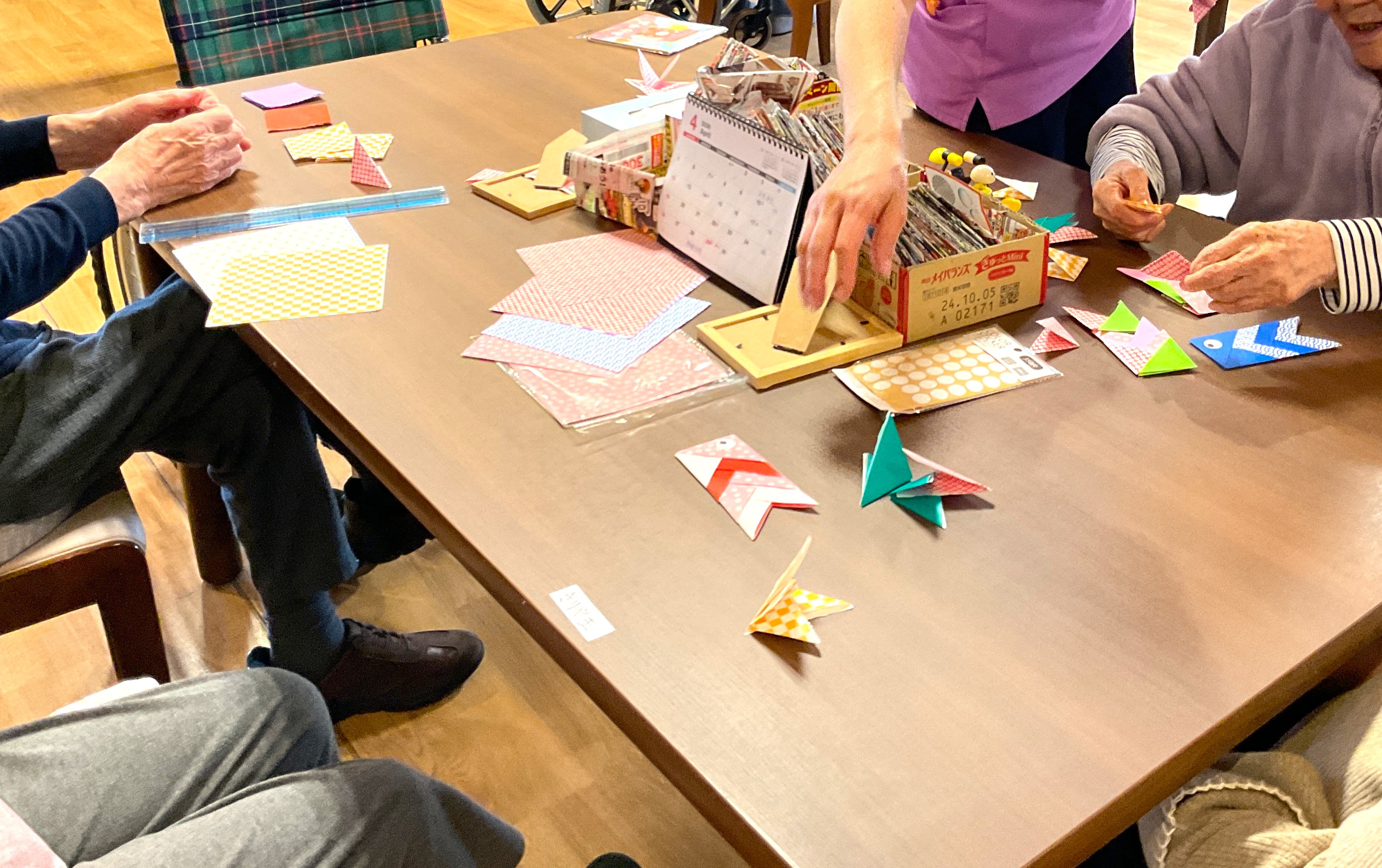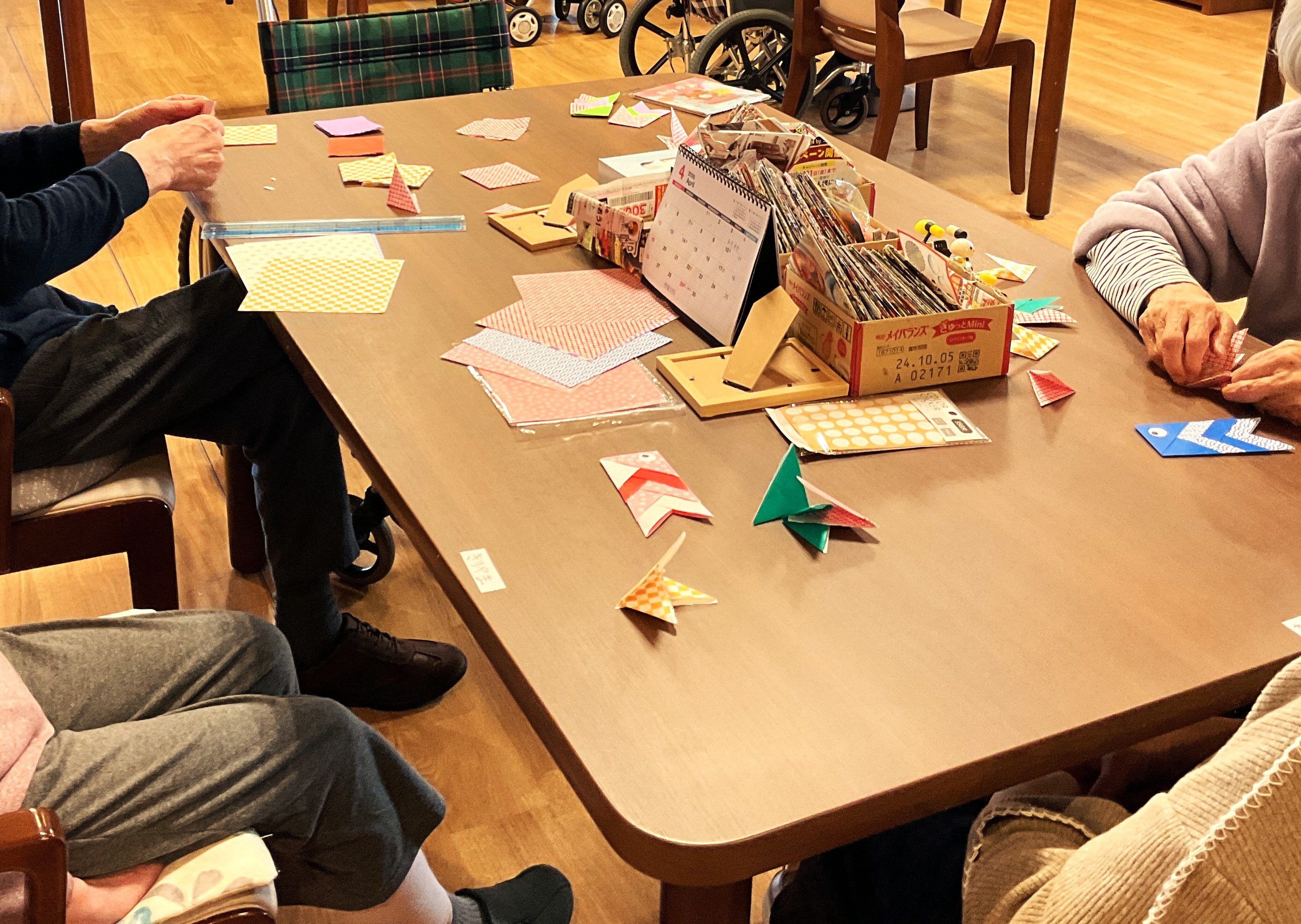 来月は5月という事で、子供の日にちなんで折り紙で鯉のぼり作りを行いました!皆さんカラフルな鯉のぼりをたくさん作って楽しまれていました。