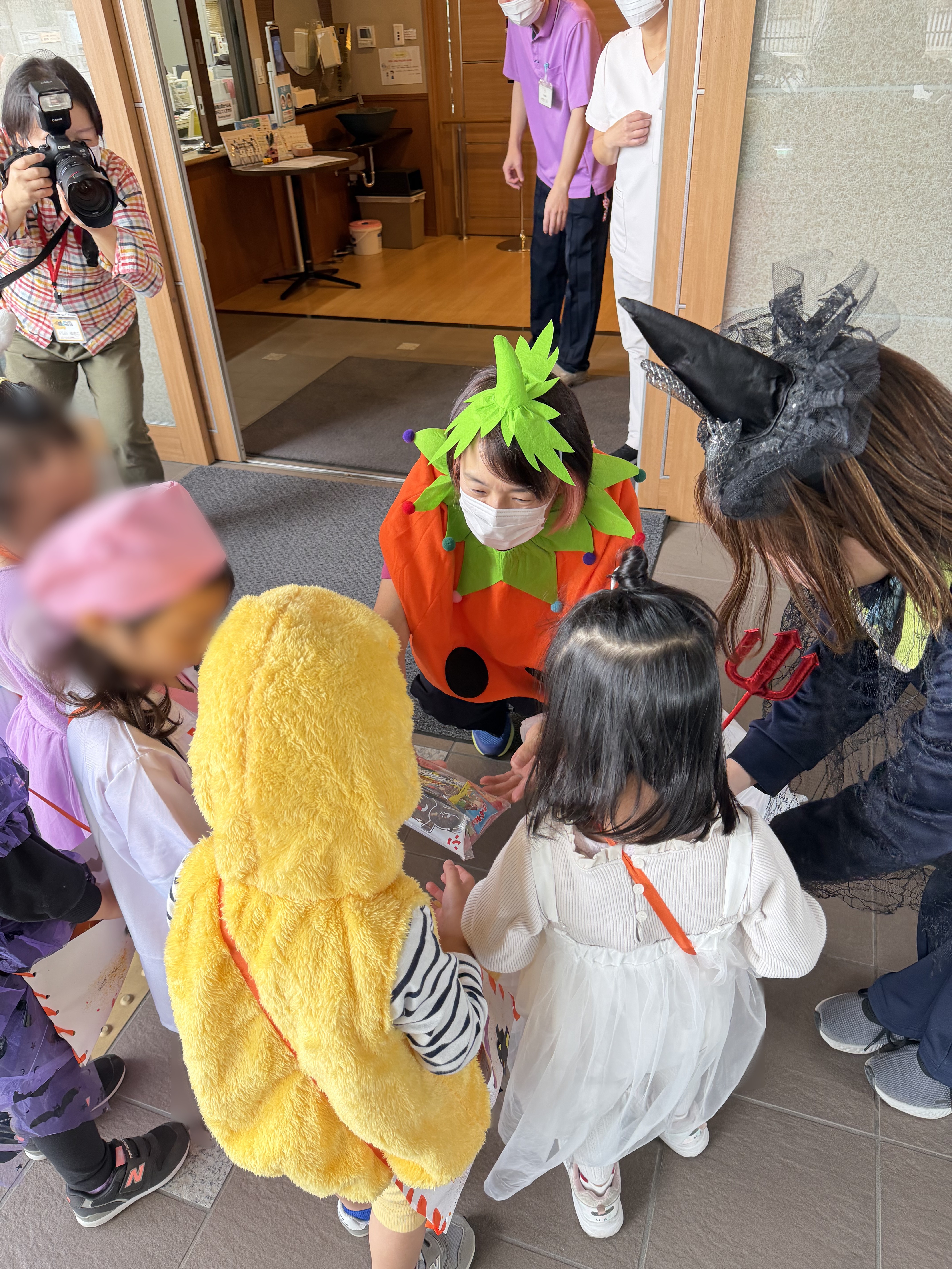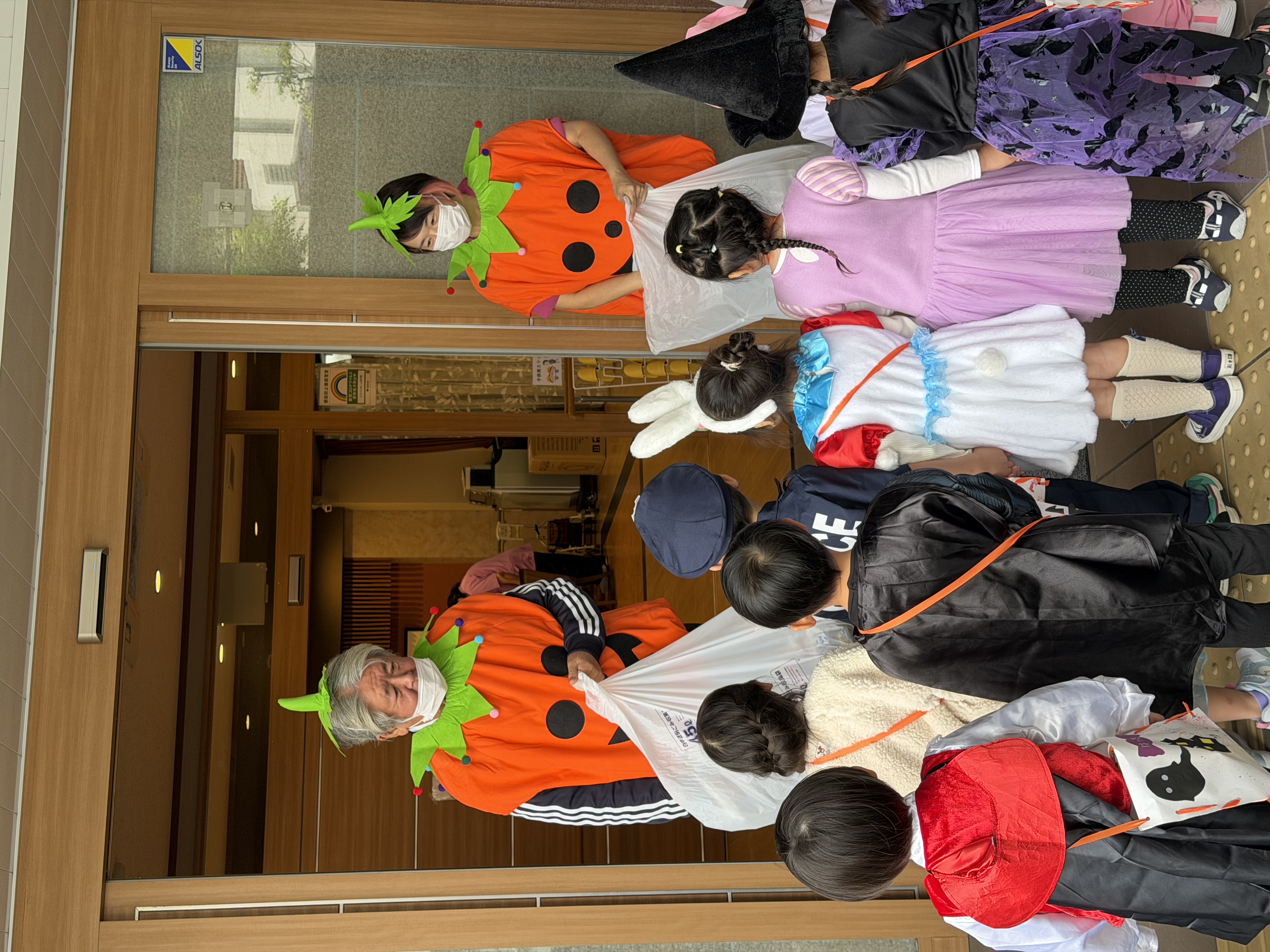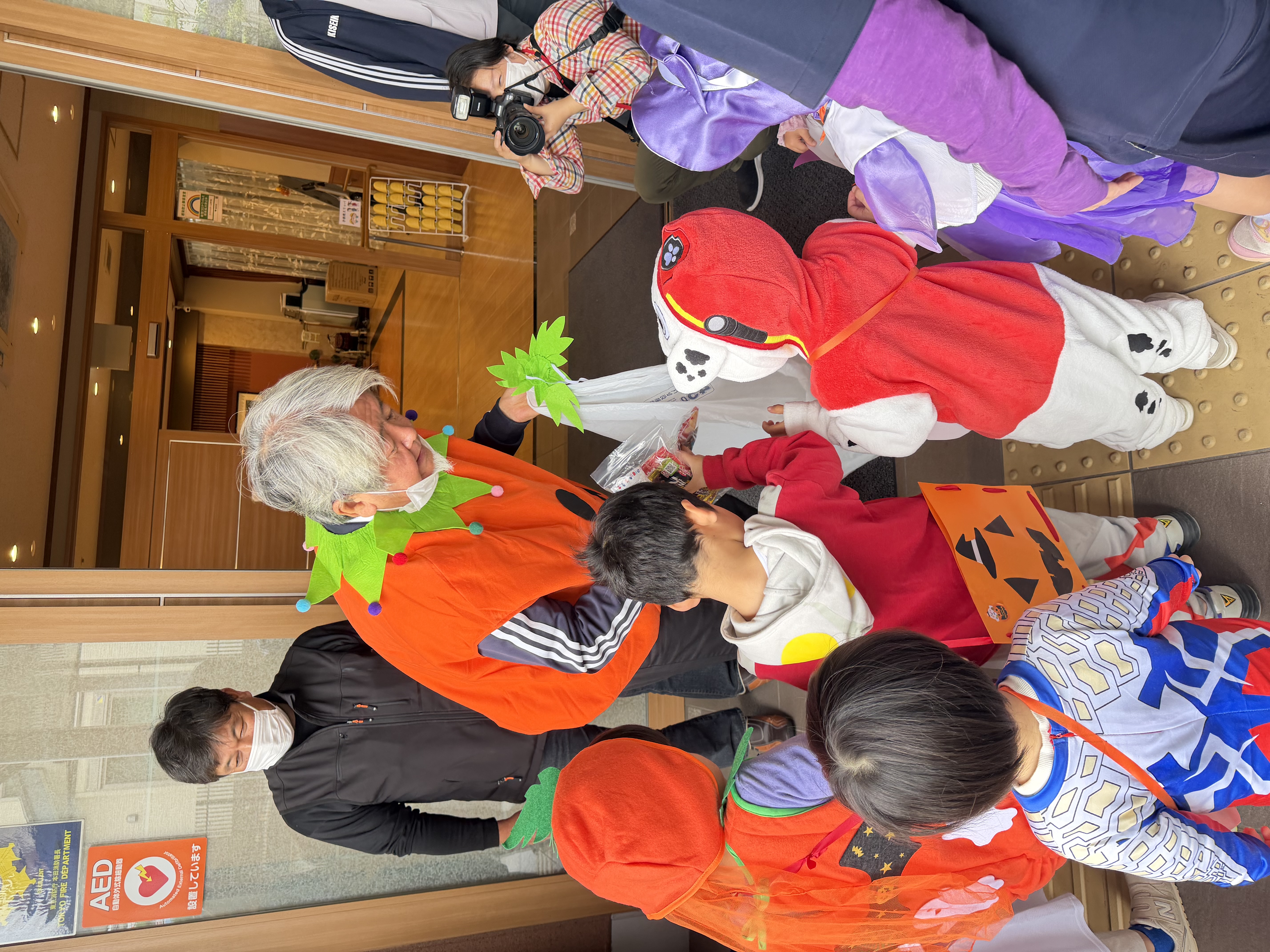 10月31日に、「おくどスマイル保育園」と「あすなろ幼稚園」の子どもたちが、先生や保護者の方と一緒にかわいい仮装をして来てくれました。